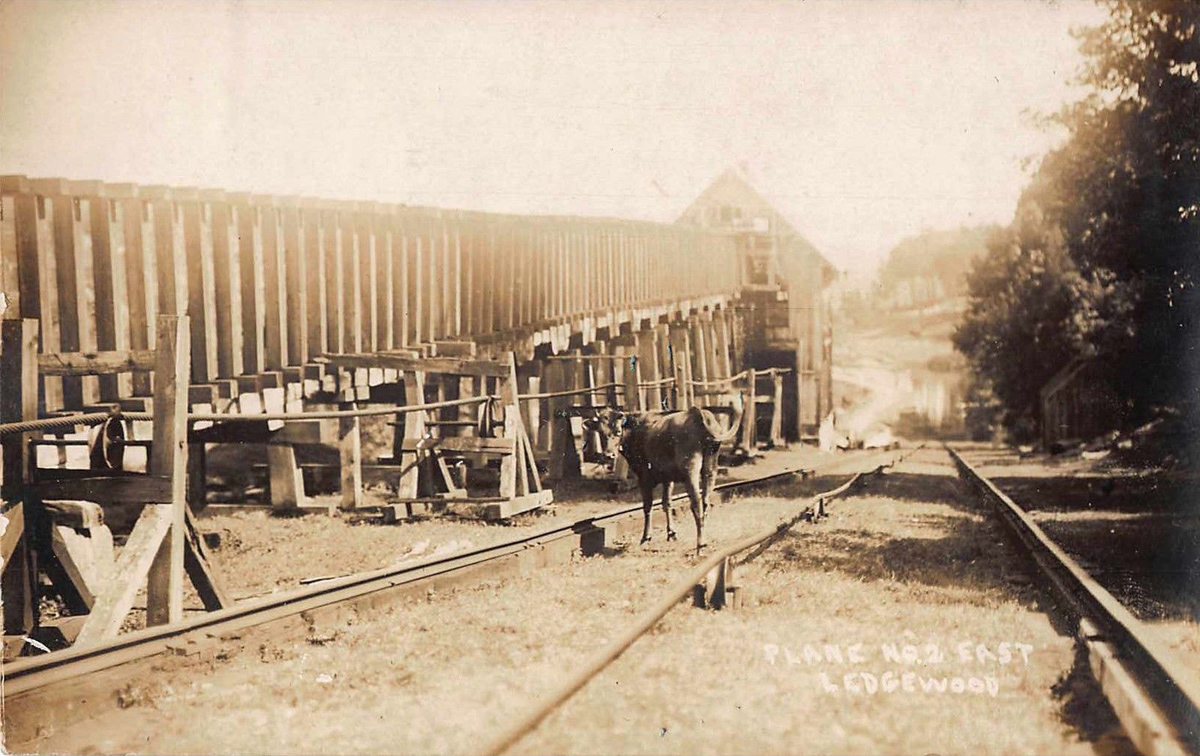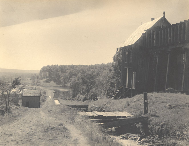 The water raceway and water turbine housing at Plane No. 2 East, Ledgewood, circa 1906.
