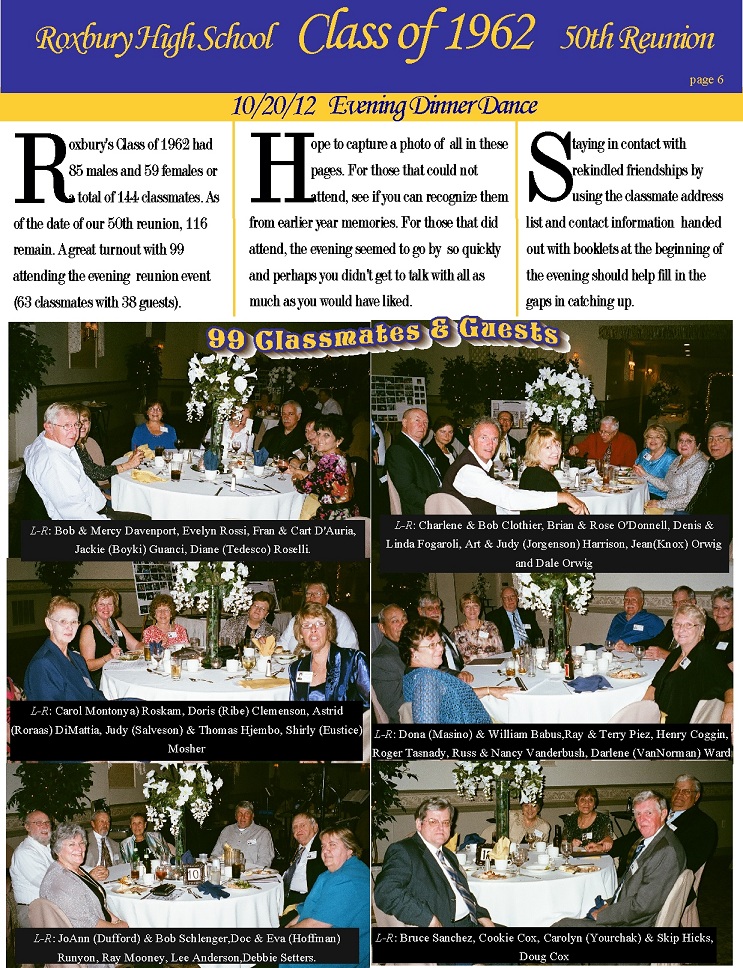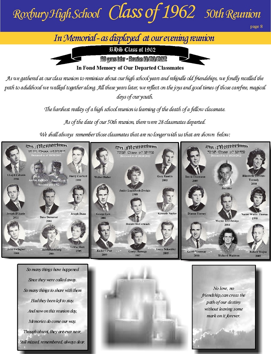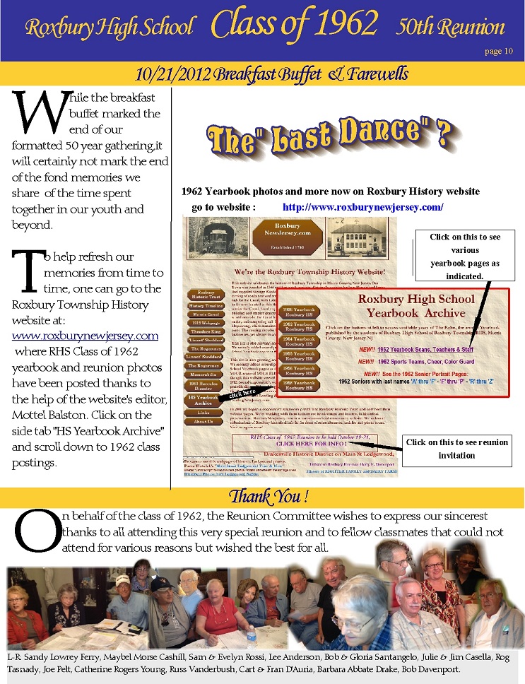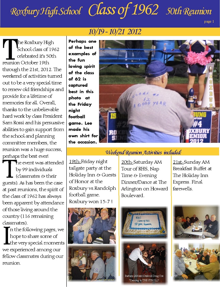 Reunion pages and the scans of the 1962 RHS Yearbook were all done by Bob