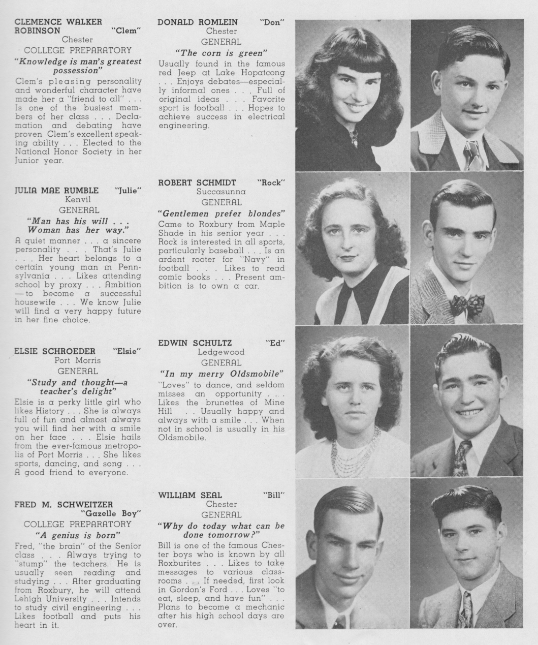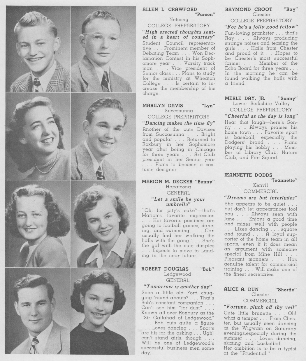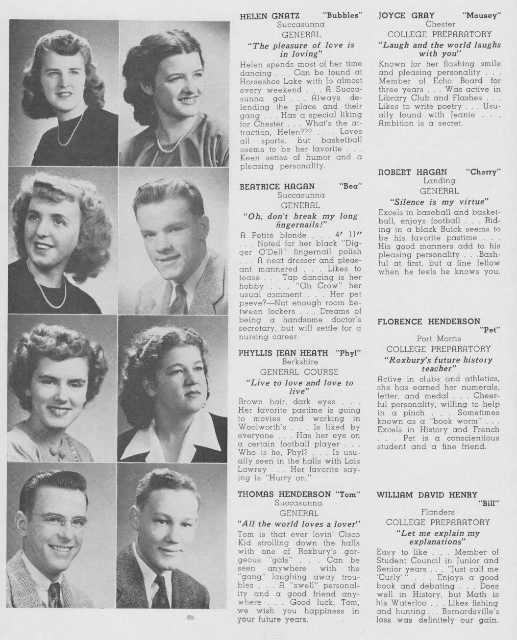 recently had loaned to us a copy of the 1948 Yearbook of Roxbury High School,