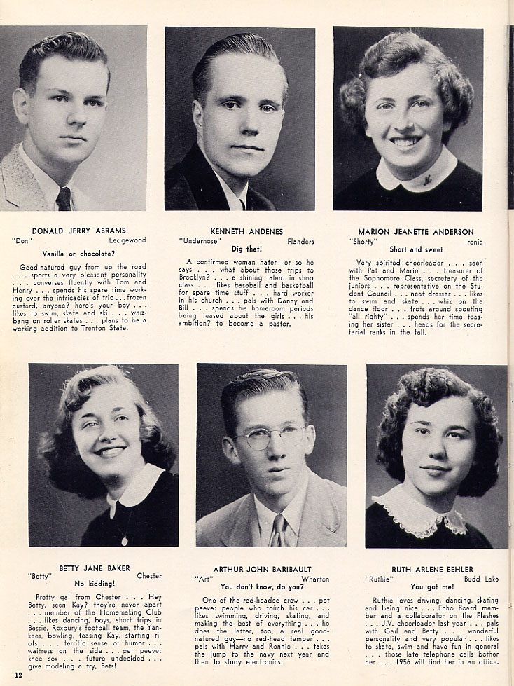 Graduating Seniors from the 1955 Roxbury High School Yearbook, page 12