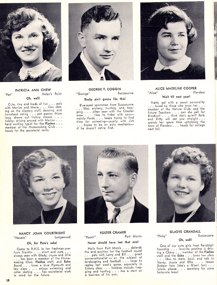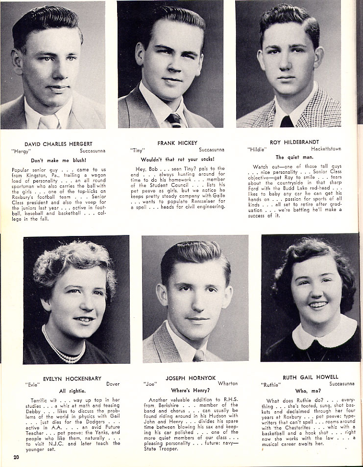 Graduating Seniors from the 1955 Roxbury High School Yearbook, page 20