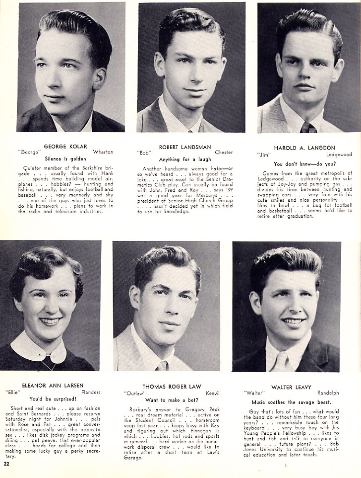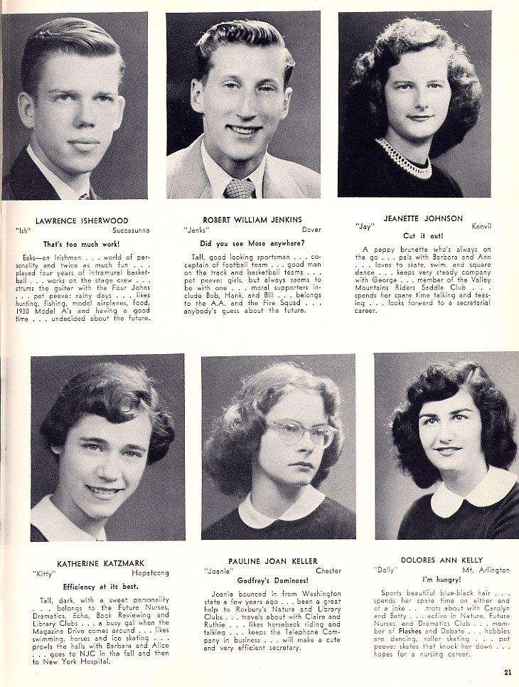 Graduating Seniors from the 1955 Roxbury High School Yearbook, page 21