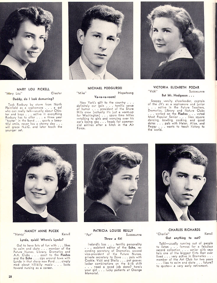 Graduating Seniors from the 1955 Roxbury High School Yearbook, page 28