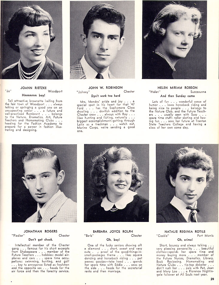 Graduating Seniors from the 1955 Roxbury High School Yearbook, page 29