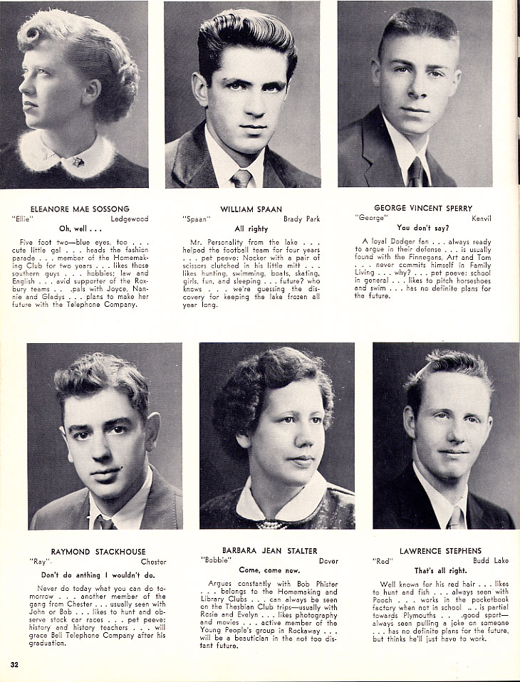 Graduating Seniors from the 1955 Roxbury High School Yearbook, page 34